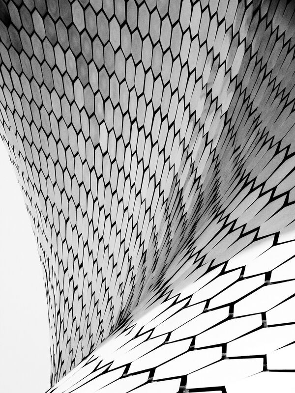 Антонио Гауди использовал широкий круг геометрических структур в храме Святого Семейства, Барселона, заложенного в 1882 году (и не завершённого к 2015 году). В них входят гиперболические параболоиды и гиперболоиды вращения,[14] замощения, арки с очертанием обратной цепной линии, катеноиды, геликоиды и линейчатые поверхности. Вариации геометрий комбинируются различными путями вокруг церкви. Например, на Фасаде Страстей Христовых храма Саграда-Фамилия Гауди собрал каменные «ветви» в форме гиперболических параболоидов, которые соприкасаются в вершинах без сходимости в одну точку. Для контраста в колоннаде имеются гиперболические параболоидные поверхности, гладко соединяющие другие структуры с образованием несвязных поверхностей. Гауди использовал природные узоры, являющиеся сами по себе математическими, с колоннами, напоминающими деревья, и притолоками, сделанными из базальта, естественным образом расколотого (при охлаждении расплавленной лавы) на шестиугольные колонны[12][13][14].