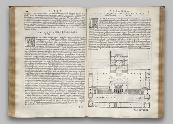 В 1570 году Андреа Палладио опубликовал авторитетные I quattro libri dell’architettura (Четыре книги об архитектуре) в Венеции. Эти книги получили широкое распространение и продвигали идеи итальянского возрождения в Европе при содействии сторонников идей, таких как английский дипломат Генри Уоттон, выпустивший в 1624 году трактат «Элементы архитектуры»[40]. Пропорции каждого помещения внутри особняка вычислялись с помощью простых математических отношений, таких как 3:4 и 4:5, и различные помещения внутри дома были связаны этими соотношениями. Ранние архитекторы использовали эти формулы для балансирования симметрии фасада. Однако проекты Палладио относились, как правило, к квадратным особнякам[41]. Палладио допускал ряд отношений в Quattro libri, утверждая[42][43]: