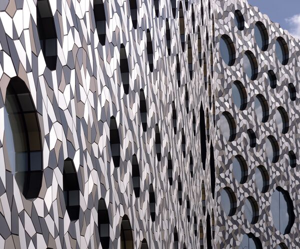 К концу XX века новые математические конструкции, такие как фрактальная геометрия и апериодичные замощения, стали использоваться архитекторами для облицовки зданий [8]. В 1913 году архитектор-модернист Адольф Лоз в своей программной статье провозгласил: «Орнамент — это преступление»[9], оказав влияние на архитектурное мышление до конца XX века. В XXI веке архитекторы снова начали использовать орнаменты, но орнаменты XXI века сильно отличаются. Концертный зал и конференц-центр Хеннинга Ларсена 2011 года в Рейкьявике выглядит подобно стене из кристаллов и сделан из больших блоков стекла[9]. Здание Равенсбурнского колледжа в Лондоне, построенное в 2010 году, покрыто 28 000 анодированных алюминиевых плиток красного, белого и коричневого цветов, связывая круглые окна различных размеров. Покрытие использует три типа плитки — равносторонний треугольник и два неправильных пятиугольника[10][11][j]. Библиотека в Канадзаве (архитекторы Кадзуми Кудо и Хироси Хориба из Coelacanth K&H Architects) имеет декоративную решётку сделанную из маленьких круглых блоков стекла, вставленных в плоские бетонные стены [9].