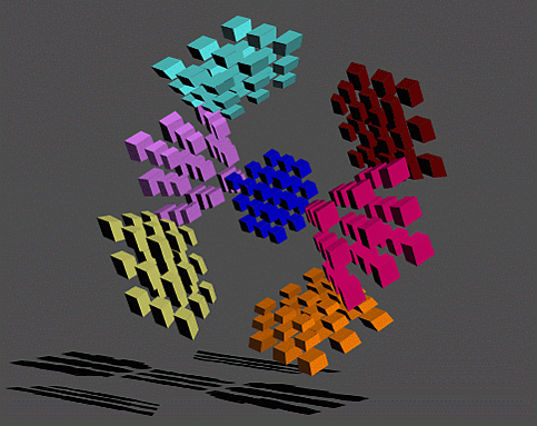 Число возможных конфигураций для кубиков в старших размерностях быстро увеличивается. Для 4D-кубика 2×2×2×2 оно равно: