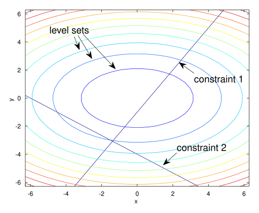 - Минимизировать () при условиях i() ≤ 0 и j() = 0, где: