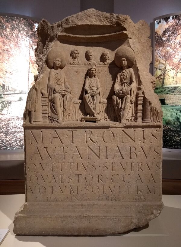 Матери (лат. matres) и матроны (matronae) — женские мифологические персонажи, почитавшиеся в I-V веках на северо-западе Европы, в частности, в римских Германии, Галлии и северной Италии. В письменных источниках они не упоминаются и известны прежде всего по вотивным табличкам и рельефам. Изображались «матроны» почти всегда по трое, часто с атрибутами плодородия. Иногда у одной из них были распущены волосы, тогда как у двух других головы были по обычаю замужних женщин покрыты, что позволило некоторым исследователям предположить, будто три «матроны» олицетворяли различные стадии женской жизни: девушка, мать, старуха[1]. По дарственным надписям на рельефах и табличках известно, что «матроны» почитались под разными эпитетами, часто кельтского или германского происхождения; например, эпитет Aufaniae трактуется как романизированное германское слово, означающее «дарующие изобилие»[2]. Сам обычай почитания «матрон» воспринимается как адаптированный под римскую традицию кельтский или германский языческий культ. Их сопоставляли с германо-скандинавскими норнами и дисами, кельтскими триадами Сулис — Сулевия — Бригантия[3] и Морриган — Бадб — Немайн[4]. Изображения «матрон», найденные на убийских территориях, обнаруживают известное сходство с иконографией докельтской богини Нехаленнии[4].