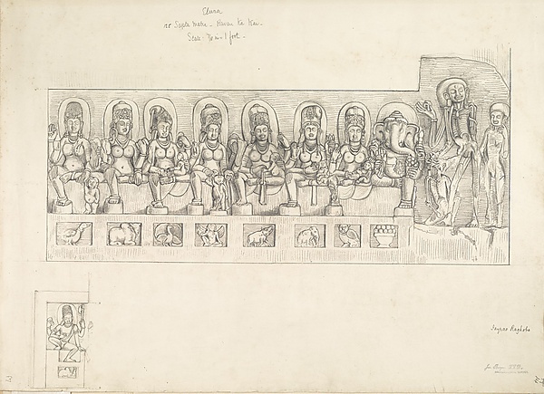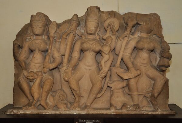 Первые скульптурные изображения божественных матерей относятся к III веку до нашей эры. Это одиночные изваяния, представляющие безымянную богиню. В последующем они становятся частью пантеона индуизма и интегрируются с популярными мужскими божествами. В начале первого тысячелетия нашей эры матрики объединяются в групповой культ, представленный саптаматрикой или семью богинями[15].