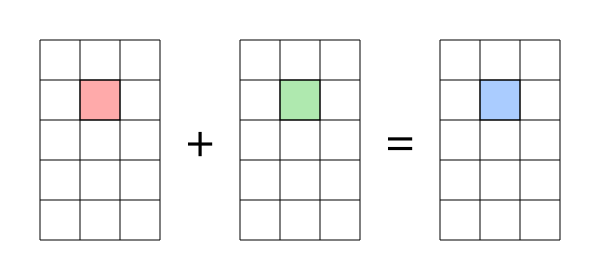Сложение и вычитание матриц определено только для матриц одинакового размера и выполняется поэлементно:[10]