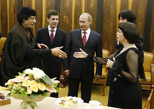 1 ноября 2008 года на концерте Мирей Матьё в Государственном Кремлёвском дворце во время антракта Владимир Путин пригласил её к себе на чаепитие, где представил Муаммару Каддафи. Для обеих сторон встреча стала полной неожиданностью. Ливийский лидер даже поинтересовался у российского коллеги, кто эта женщина.