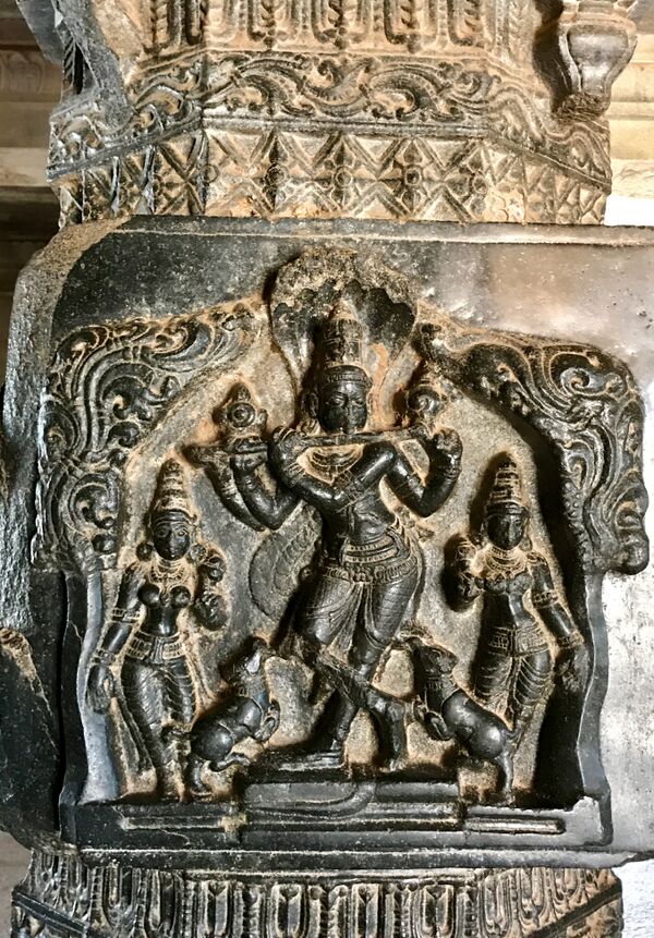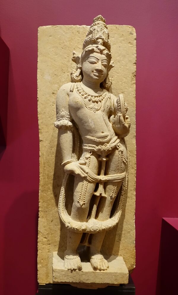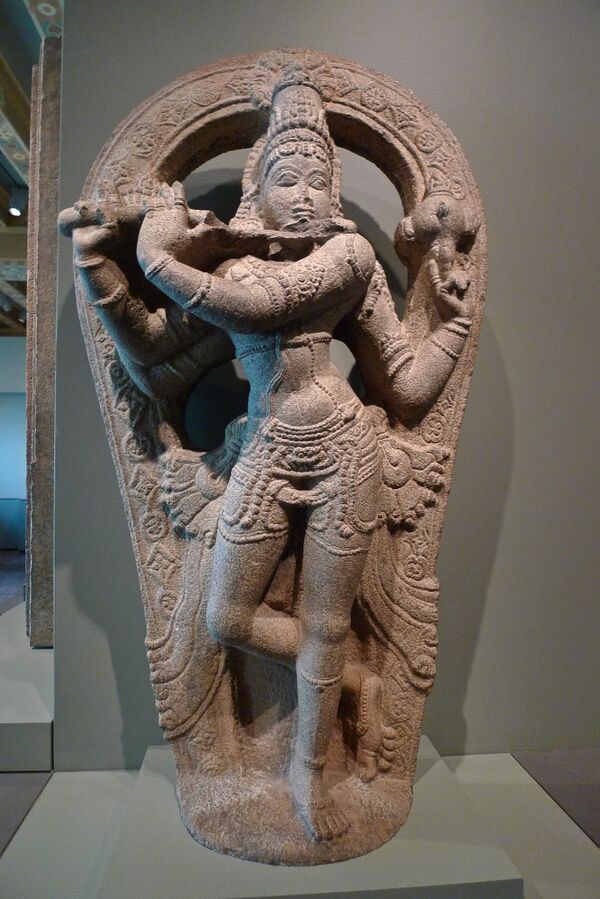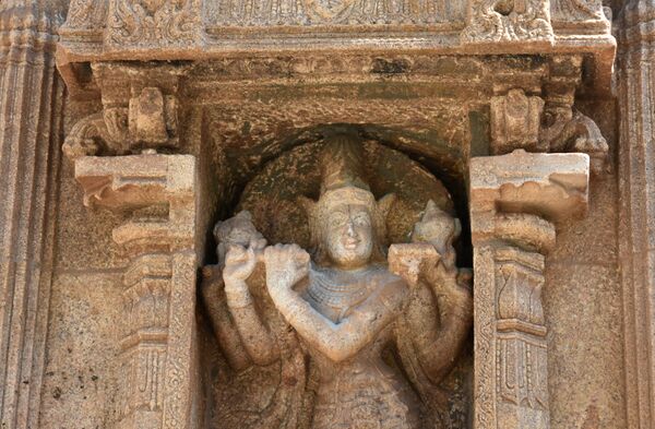 В руках Вишну можно встретить флейту, на которой он играет завораживающие мелодии. Поперечная флейта, называемая «бансури», родилась в Древней Индии и входит в традиционные музыкальные инструменты наряду с барабаном и струнными. Как свидетельствуют многочисленные скульптуры в храмах Южной Индии, а также упоминания о ней в тамильской литературе, флейта была ведущим инструментом в танцевальной музыке на протяжении большей части последних двух тысячелетий[13].