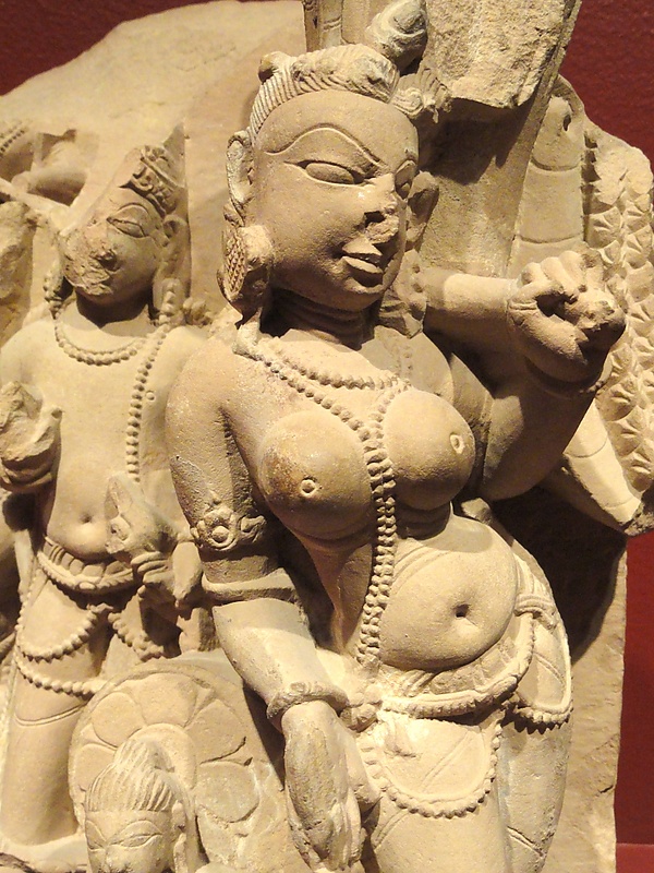 Самым ранним, сохранившимся до наших дней изображением четырёхрукого Вишну считается скульптурный образ, найденный возле городка Малхар (Мадхья-Прадеш). Он представляет собой фигуру из песчаника бежевого цвета. У Вишну четыре руки, из которых две передние соединены вместе и, возможно, первоначально держали раковину. Гигантская булава удерживаются передней правой рукой, а задняя левая рука держит чакру. Скульптура обнаружена в 1960 году и датируется II веком до н. э. Полное осознание божественной природы Вишну произошло позже, в эпоху искусства Гуптов, между IV и VI веками. Наступает «золотой век» вайшнавского искусства. Изображения Вишну и аватар достигают наивысшего художественного расцвета. Их облики исполнены великолепия и элегантности. У Вишну вьющиеся по одежде волосы, которые подчёркиваются изящными линиями дхоти. Его лицо отражает внутреннее состояние — гармонию и покой. Опущенные веки Вишну придают лицу ровное и блаженное выражение. Лицо стало овальным, тело — стройными, а одеяние — прозрачным. Верхнее веко увеличилось в размере, в результате чего большие глаза стали подобны бутонам лотосам. Лицо приобрело чувственность благодаря полным губам, похожими на зрелые плоды бимба[7].