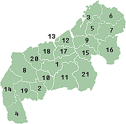 Административно подразделяется на 4 региона, которые в свою очередь делятся на 21 департамент: