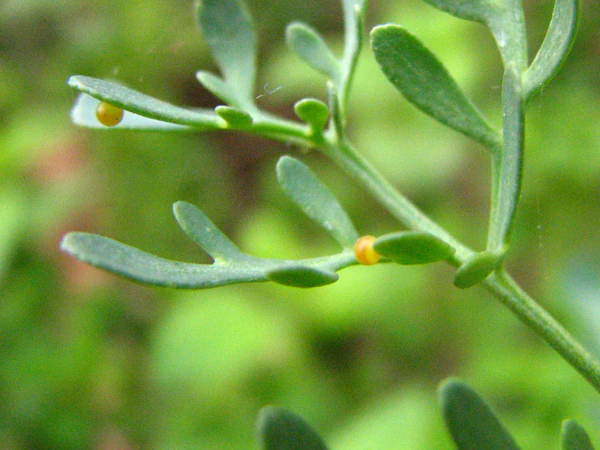 В средней полосе кормовыми растениями служат различные зонтичные, в частности — борщевик (Heraclium), морковь (Daucus) — как дикая, так и обыкновенная, укроп (Anethum), петрушка (Petroselinum), дягиль (Angelica), бутень (Chaerophyllum), горичник (Peucedanum), прангос (Prangos), фенхель (Foeniculum), порезник (Libanotis), гирча (Selinum), гирчовница (Thyselium), сельдерей (Apium), тмин (Carum), бедренец (Pimpinella), резак (Falcaria). В других регионах — представители рутовых: ясенец мохнатоплодный (Dictamnus dasycarpus), бархат амурский (Phellodendron amurensis), различные виды цельнолистника (Haplophillum); сложноцветных: полынь (Artemisia) (в степях и пустынях Средней Азии); берёзовых: ольха Максимовича (Alnus maximowiczii), ольха японская (A. japonica) (последняя — на Южных Курилах)[8][9].