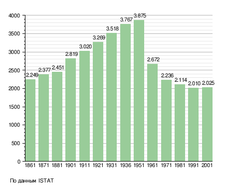Население составляет 2116 человек (2008 г.), плотность населения составляет 53 чел./км². Занимает площадь 40 км². Почтовый индекс — 61023. Телефонный код — 0722.