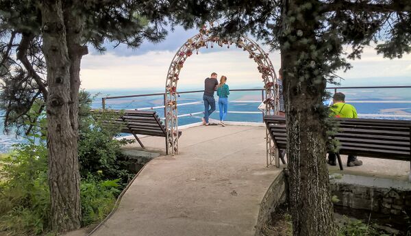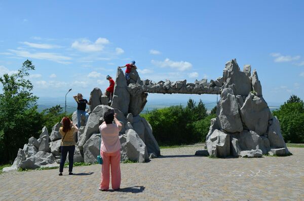 На склоне горы имеется смотровая площадка, где установлены Ворота солнца.