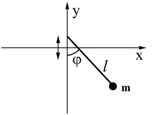 Направим ось вертикально вверх, а ось горизонтально, так чтобы плоское движение маятника происходило в плоскости ( — ). Введём обозначения: