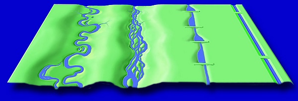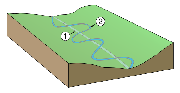 Большое число рек, имеющих извилистые очертания, характерны тем, что в них происходят плановые переформирования, обусловленные воздействием потока на русло.