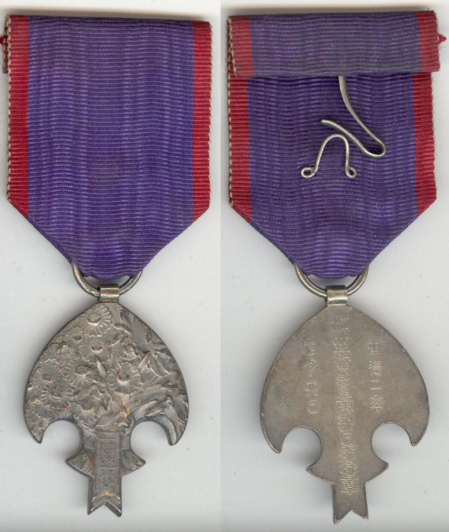 Звено медали, соединяющее ленту с медальоном, имеет клеймо "М 1000", означающее, что медаль сделана на Осакском монетном дворе.