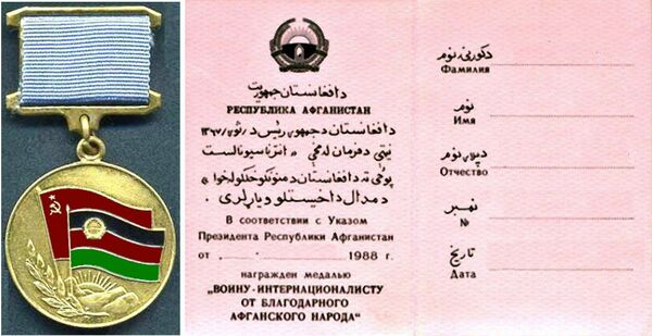 Медаль «Воину-интернационалисту от благодарного афганского народа»
