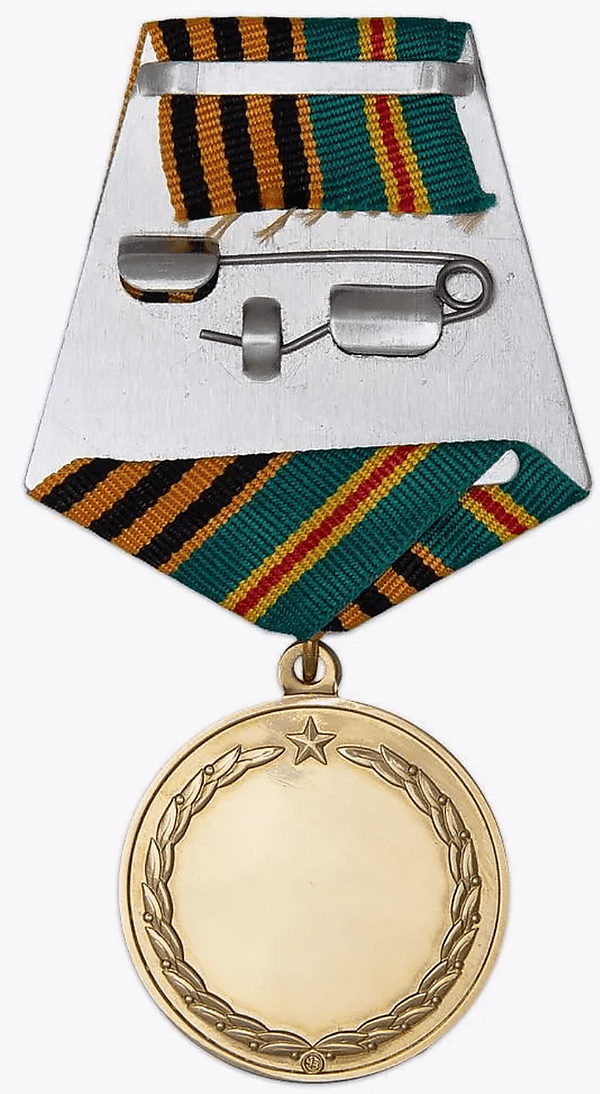 На реверсе медали изображён лавровый венок, сходящийся к звезде. Помимо того, указан порядковый номер награды[1].