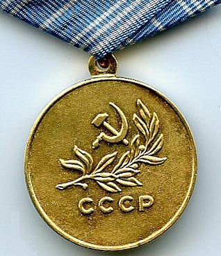 На оборотной стороне медали изображены серп и молот, ниже которых — лавровая ветвь и надпись «СССР». Медаль с лицевой и оборотной стороны окантована выпуклым бортиком.