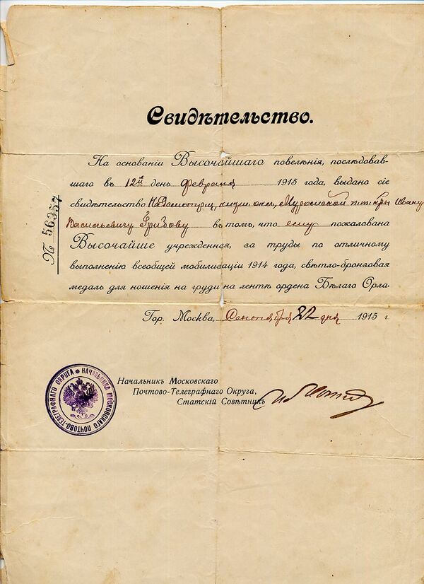 Медаль «За труды по отличному выполнению всеобщей мобилизации 1914»
