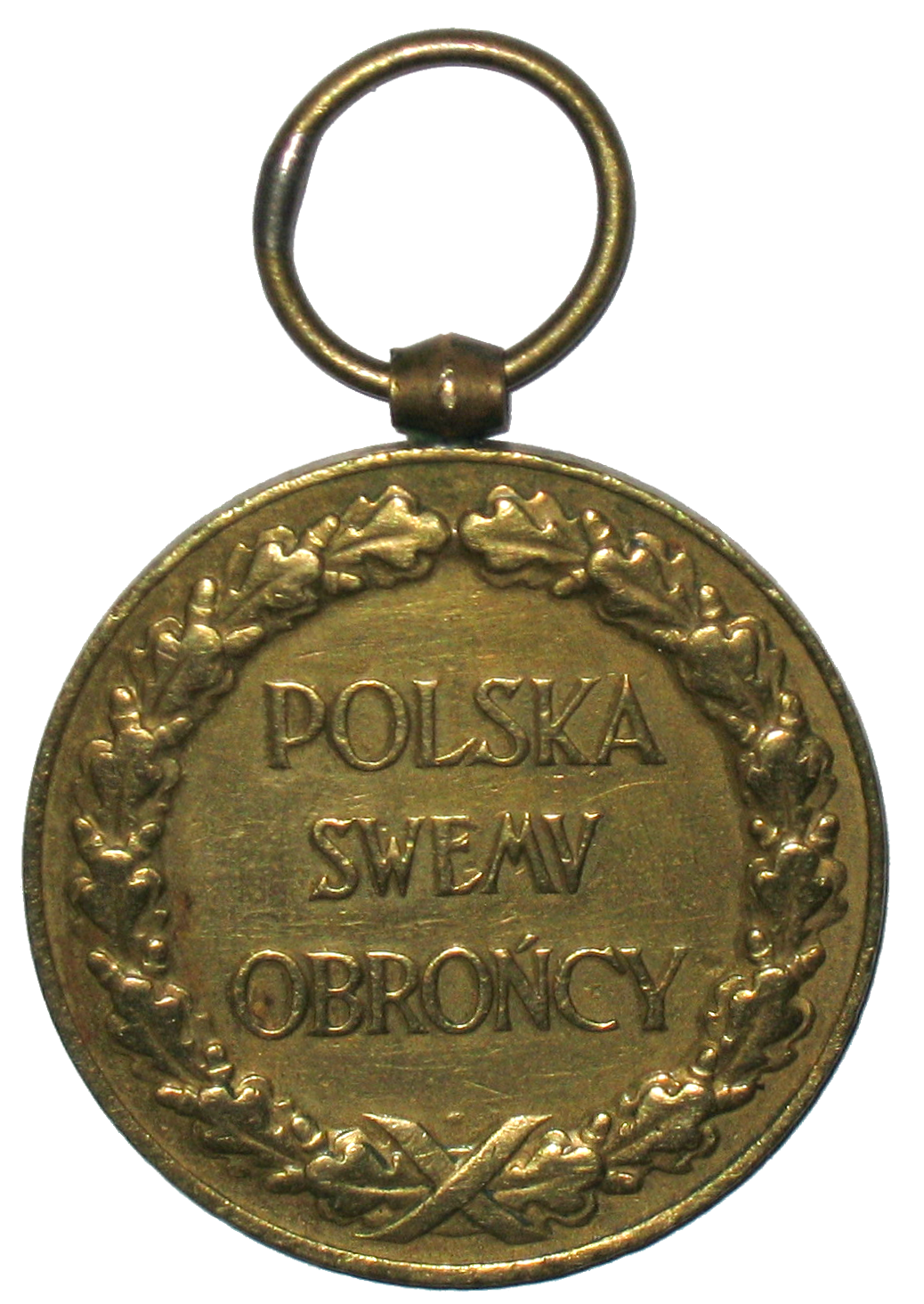На оборотной стороне медали в центре надпись в три строки: «POLSKA SWEMU OBROŃCY» (Польша — своему защитнику). По окружности — венок из дубовых ветвей, перевитый в нижней части лентой.