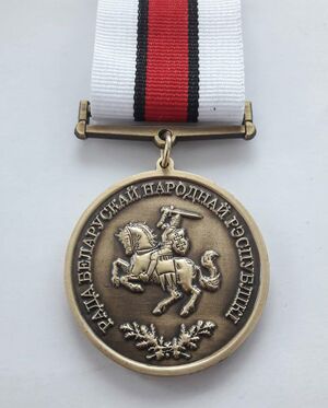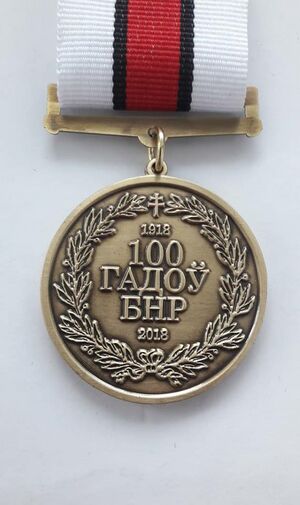 - ↑ МЕДАЛЬ ДА СТАГОДДЗЯ БНР: АПІСАННЕ Архивная копия от 31 октября 2021 на Wayback Machine, Сайт Рады БНР 19 лютага 2019