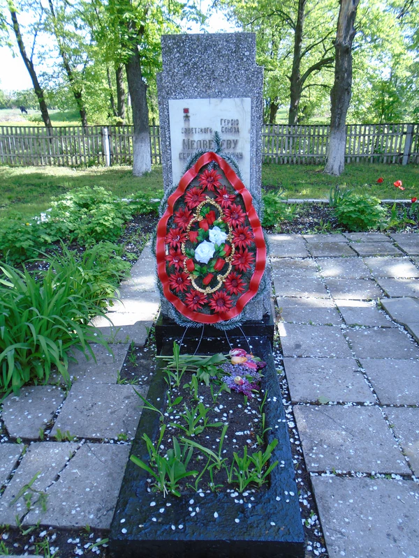 22 июня 1942 года в районе села Михайловка Шевченковского района взвод Медведева атаковал немецкую колонну, уничтожив 5 танков и около 200 солдат и офицеров противника. 1 танк и 17 солдат противника уничтожил лично Медведев, который погиб в этом бою. Похоронен в Михайловке[1].
