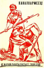 Первоначально основной рабочей силой стали мобилизованные румыны — жители Черновицкой области. 19 и 22 августа в Медвежьегорск прибыли два этапа численностью 3600 человек. В октябре — третий этап (261 человек), а затем небольшими группами: греки, болгары, кабардино-балкарцы. В мае 1945 года начались строительные работы по восстановлению канала. В декабре 1945 года из петрозаводского спецлагеря прибыли 445 бывших советских военнопленных в Финляндии[15].