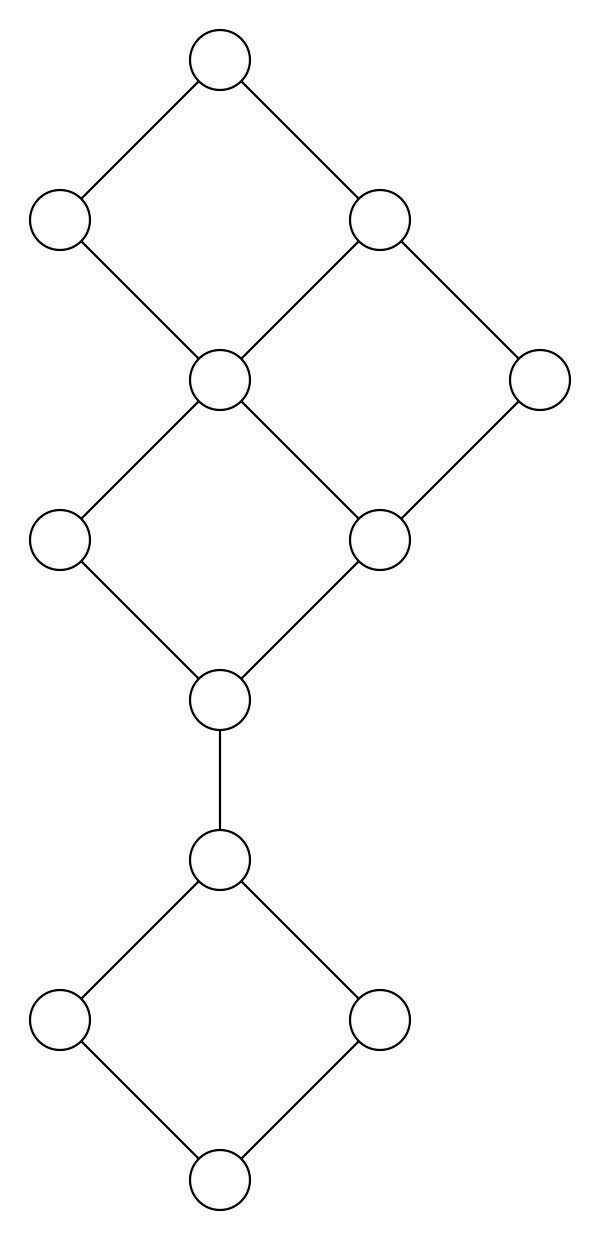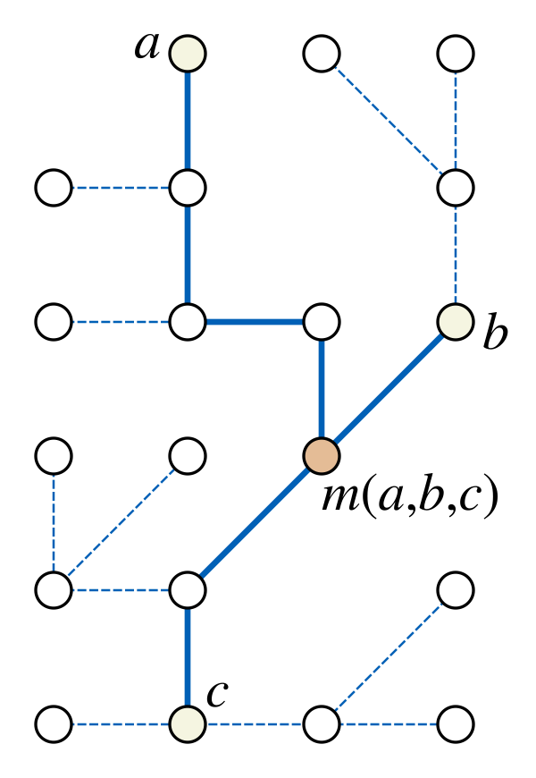 Таким же образом, для любых трёх вершин a, b и c можно найти вершину m(a,b,c), такую, что невзвешенное расстояния в графе удовлетворяют равенствам