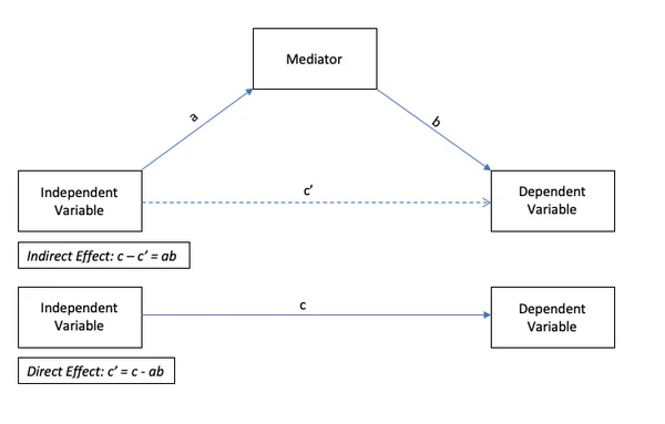 Переменная-медиатор может либо полностью, либо частично объяснить наблюдаемую связь между двумя переменными.
