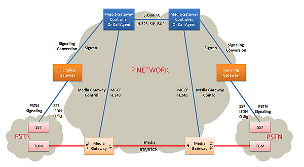 Потоковые операции над медиа данными, такие, как подавление эха, DTMF и прочие осуществляет MRFP (процессор функции мультимедийных ресурсов) или иначе IP медиасервер в IMS согласно 3GPP, который контролируется чаще всего SIP. Медиасервер — механизм сетевой обработки общецелевого назначения выделяется отдельным элементом, так как он добавляется к любым традиционным голосовым сетям или пакетным сетям и может быть расположен в любой точке сети. В IMS контроль медиасервера осуществляет MRFC (Media Resource Function Controller), в Cable/MSO Application Manager, в NGN терминах — Application Server. В NGN (проводной и беспроводной) архитектуре, медиасервера обрабатывают медиа потоки для агентов контроля. Агенты контроля можно назвать агентами (иногда называют «гибкий коммутатор») и / или сервер приложений. Call-агент (коммутационная логика) в 3GPP IMS терминах S-CSCF, в терминах Cable/MSO как CMTS.