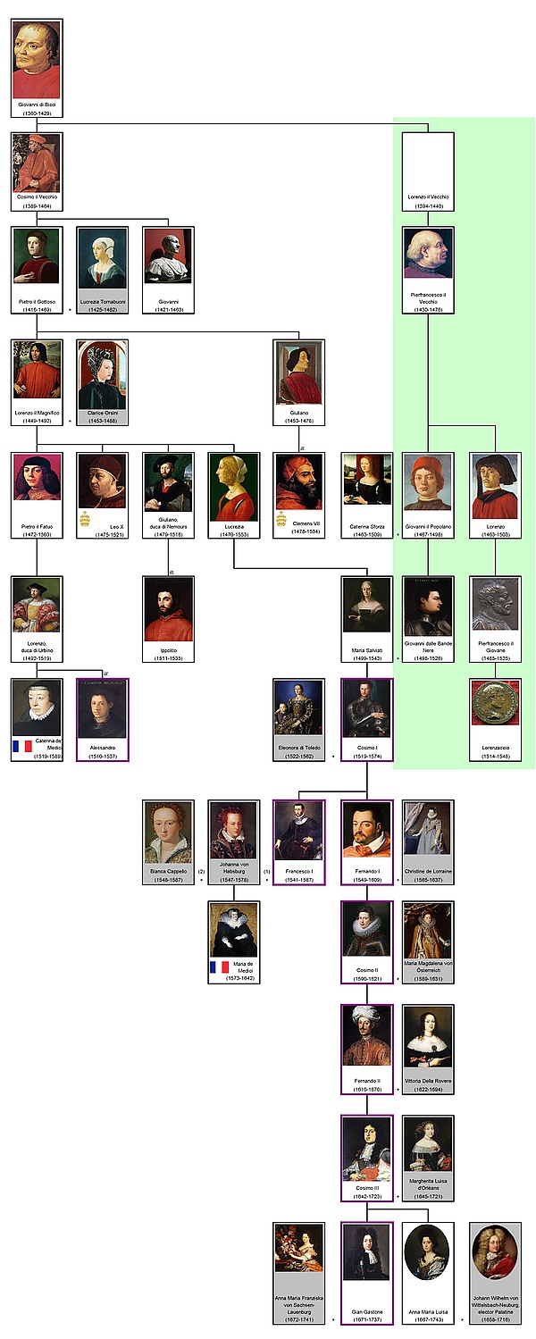 - Джованни иль Пополано Медичи (1467—1498), женат на Катерине Сфорца