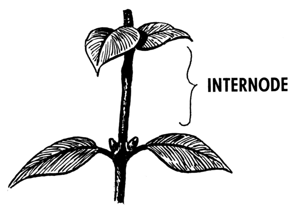 Обычно на стебле возникает много узлов и междоузлий. От длины междоузлий зависит длина стебля.