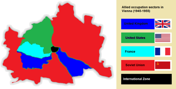 - Во время оккупации Вены союзниками между 1945 и 1955 годами небольшая интернациональная зона в историческом центре города попеременно управлялась американскими, британскими, французскими и советскими войсками.