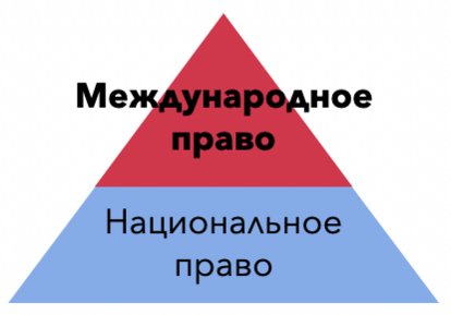 - Во-первых, государственные суды, прочие органы государственной власти и должностные лица не могут обращаться к нормам международного права до тех пор, пока они не были подвергнуты трансформации и имплементированы во внутригосударственное право. Такая трансформация может осуществляться множеством различных способов (ратификация, легитимация, отсылка, принятие и пр.), но суть её всегда заключается в преобразовании нормы одной правовой системы в норму другой, ей противостоящей.