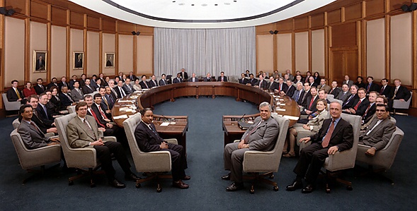 Нужно учитывать, что голоса при принятии решений о действиях Фонда распределяются пропорционально взносам. Для одобрения решений Фонда необходимо 85 % голосов. США обладают около 17 % всех голосов. Этого недостаточно для самостоятельного принятия решения, но позволяет блокировать любое решение Фонда. Сенат США может принять законопроект, запрещающий Международному валютному фонду выполнять определённые действия, например, выделять кредиты странам[17]. Как указывает китайский экономист профессор Ши Цзяньсюнь, перераспределение квот отнюдь не изменяет базовые рамки организации и соотношение сил в ней, доля США остаётся прежней, они обладают правом вето: «Соединённые Штаты, как и раньше, руководят порядком МВФ»[18].