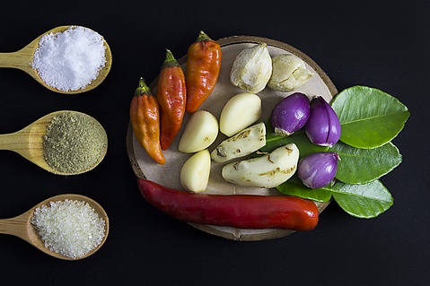 Приправа Бумбу Себлак Куах (Индонезия): кандилат, чеснок, лук, чили, сахар кенчур и коричневый сахар.