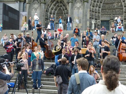 Флешмоб джазовых музыкантов в Кёльне, посвящённый первому празднованию Международного дня джаза в 2012 году