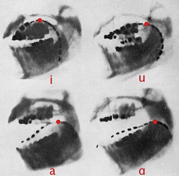 - [a] считается передним гласным, но различие между передними и средними гласными нижнего подъёма невелико, и [a] часто используется и для обозначения среднего гласного нижнего подъёма[17]. Но если необходимо разрешить неоднозначность, можно добавить диакритику втягивания для обозначения среднего гласного нижнего подъёма ([a̱]).