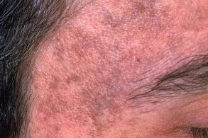 Пигментация, как правило, начинается с появления отдельных пятен, которые со временем сливаются, формируя сетчатый рисунок. Цвет кожных изменений варьирует от коричневого и серовато-бурого до синеватого, причём оттенки зависят от фототипа кожи, длительности заболевания и характера провоцирующего фактора. В области гиперпигментации нередко выявляются папулы, шелушение, элементы фолликулярного гиперкератоза, телеангиэктазии, участки депигментации и, при длительном течении, признаки атрофии кожи. В тяжёлых случаях возможно появление гиперпигментации не только на лице и шее, но и на туловище, верхних конечностях, подмышечных впадинах, животе. У некоторых пациентов возможно окрашивание слизистой оболочки щёк и желтушность склер[2][3].