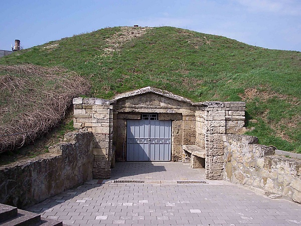 Погребальное сооружение кургана состоит из двух частей: дромоса и погребальной камеры. Погребальная камера была выполнена в форме квадрата (3,7x3,7 м) из каменных плит и имела пирамидальный свод. Каменные плиты стен в верхней части постепенно сдвинуты таким образом, что создают пирамидальный свод, и вверху погребальная камера перекрывается одной плитой. Дромос выполнен также из каменных плит и украшен фронтоном. В июне 1863 года в северной части кургана был найден надгробный камень I век до н.э. с рельефным изображением женщины с надписью «Ма, теща Иосара, прощай». После выполнения реставрационных работ в 1871 году погребальное сооружение кургана было открыто для доступа публики[1].