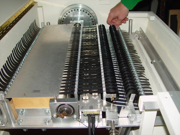 - каждую клавиатуру разделили на две части (клавиши 1—18 и 19—35) с отдельным блоком головок, предусилителем и регулятором громкости, был также снижен коэффициент шумов