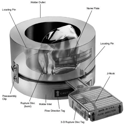- 3-D Rupture Disc Tag — хвостовик мембраны с указанием направления потока;