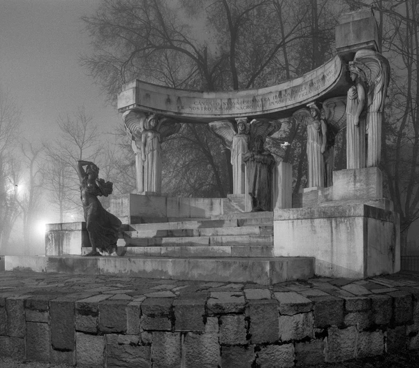 В мемориале «Павшим» (итал. Ai caduti), открытом в 1928 году в Казале-Монферрато, его автор, скульптор Леонардо Бистольфи (1859—1933), с мастерством и мерой воплотил наиболее выразительные формы, сложившиеся в античности и развитые в эпоху Возрождения. Полукруглую экседру поддерживают четыре окрылённые карриатиды, символизирующие победу и составляющие окружение центральной фигуры — бронзовой статуи воина в облачении эпохи крестовых походов (Il Fante Crociato). По ступеням, ведущим от полуротонды вниз, навстречу зрителю сбегает слегка прикрытая воздушными прозрачными материями девушка — Итальянская весна (итал. Primavera Italica).