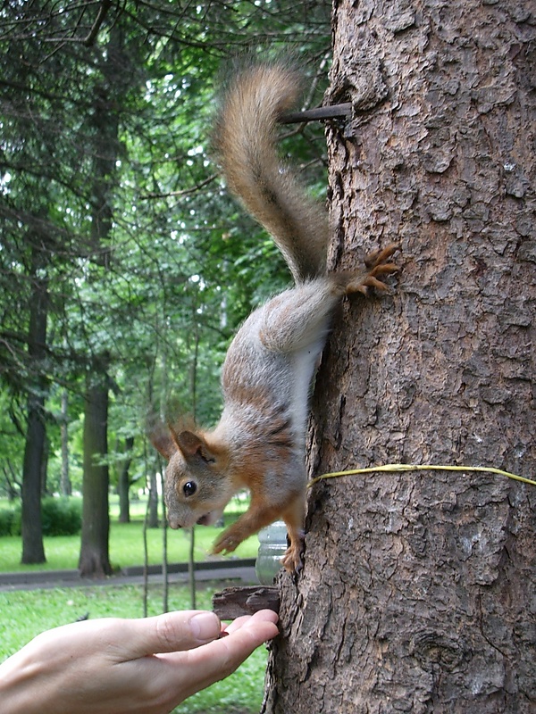 На сравнительно небольшой территории парка обитают более десяти белок. Для них оборудовано несколько кормушек. Белки привыкли к соседству с человеком и охотно берут корм из рук.