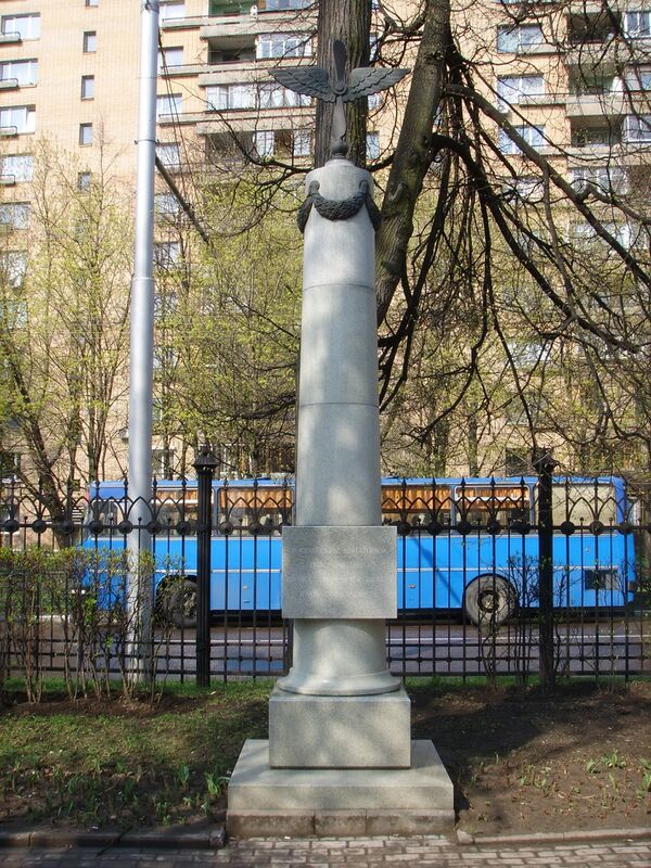 - Памятник российским авиаторам расположен на западной аллее парка — бывшей «аллее лётчиков»[80]. Памятник представляет собой колонну, стоящую на прямоугольном основании. Верхнюю часть колонны обрамляет бронзовый венок. На вершине памятника — скульптура в виде авиационного пропеллера с птичьими крыльями. В нижней части колонны — прямоугольный выступ с выгравированной на нём надписью: «Российским авиаторам похороненным на Московском городском Братском кладбище».