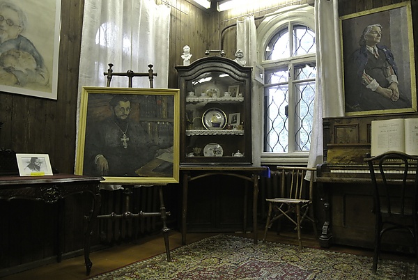 Далее следует «Комната для гостей», где часто останавливался художник М. В. Нестеров. Здесь можно увидеть личные вещи и рисунки художника, в том числе этюд одного из самых известных полотен «Видение отроку Варфоломею».