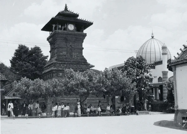 Доисламские элементы предполагают, что комплекс включает в себя уже существовавшие индуистско-яванские сооружения. Мечеть несколько раз перестраивалась, убирая свидетельства того, как выглядела первоначальная структура. Ворота, стены и минарет в стиле маджапахит, которые сегодня кажутся такими неуместными, возможно, гармонично вписывались в первоначальную структуру (которая, вероятно, имела крышу в стиле башни Меру, поддерживаемую большими колоннами, как в Сиребоне и Демаке). [3] Остроконечная крыша представляет собой реконструкцию 1920-х годов с заменой деревянной черепицы терракотовой, а между ярусами крыши установлены стеклянные окна. Крыша увенчана элементом мастака, похожим на корону.[2] Надпись на михрабе гласит, что мечеть была основана Джафаром Шодиком в 956 г. хиджры (1549 г. н.э.). Считается, что мечеть посещал Сунан Кудус, один из девяти исламских святых Явы (Вали Санга), который похоронен в искусно вырезанном мавзолее позади мечети.[4] Комплекс включает в себя мечеть в стиле империи Моголов с серебристым луковичным куполом и бетонными колоннами.