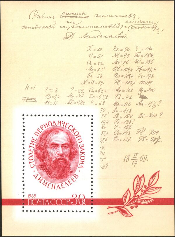 - Министерством связи СССР в 1969 году выпущена почтовая открытка «Д. И. Менделеев. 100-летие периодического закона»[171]