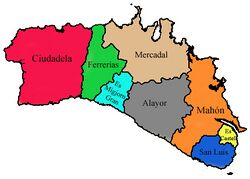 - Вильякарлос (Эс-Кастелл) — основан англичанами, изначально назывался Джорджтаун.