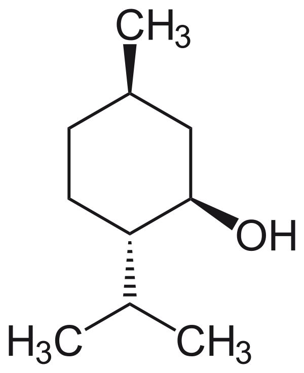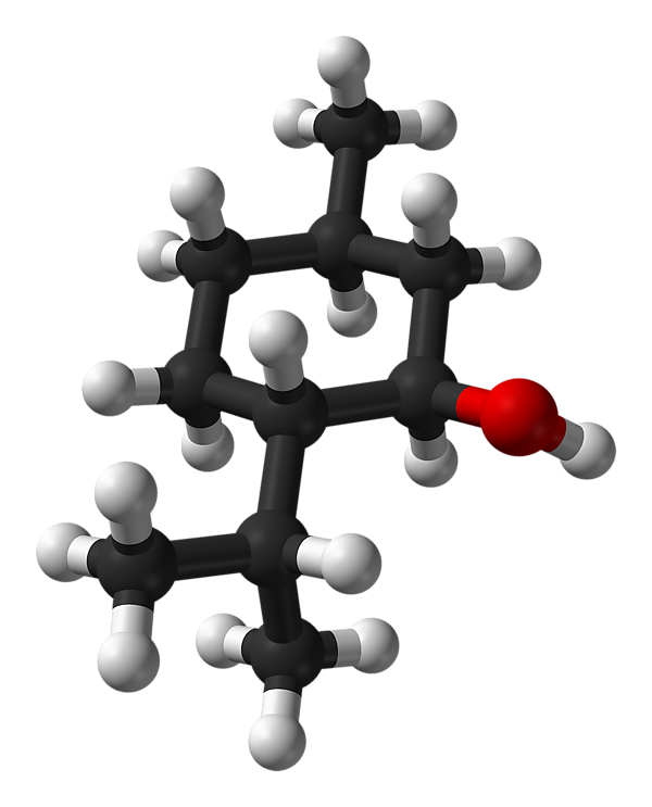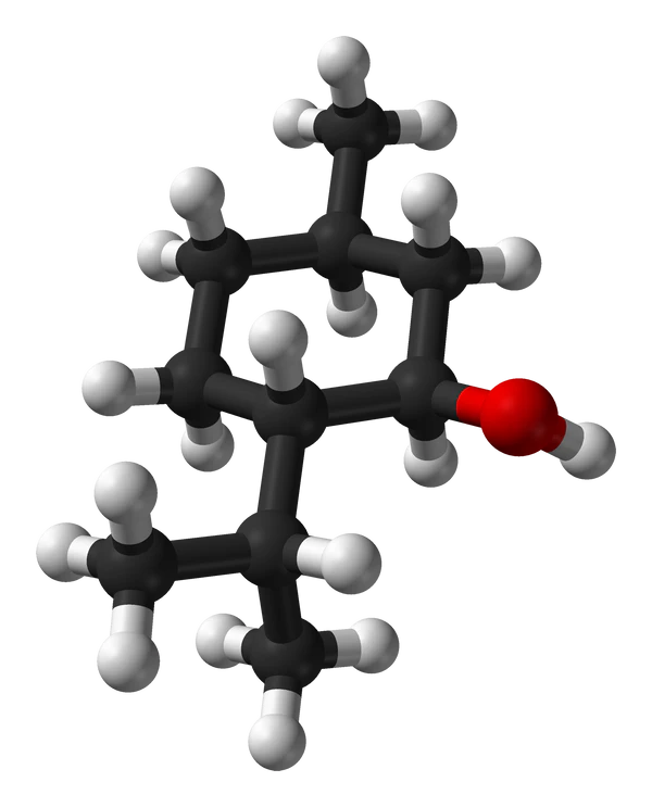 Все 3 объёмные группы в конформации «кресло» находятся в наиболее удалённых друг от друга экваториальных положениях, что делает (-)-ментол и его энантиомер — двумя наиболее стабильными изомерами из 8 возможных.