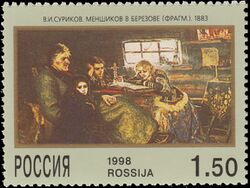 Картина «Меншиков в Берёзове» на почтовой марке России 1998 года[187]